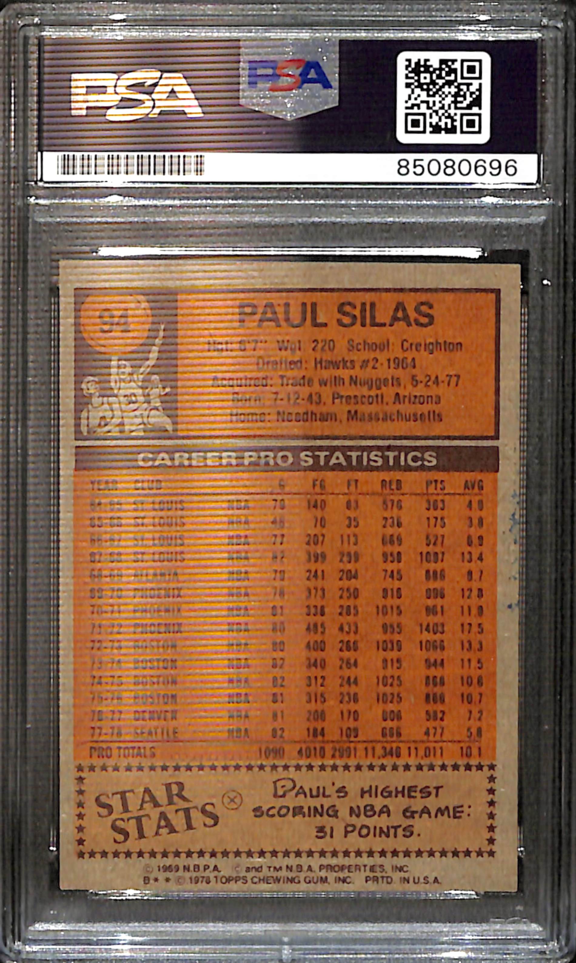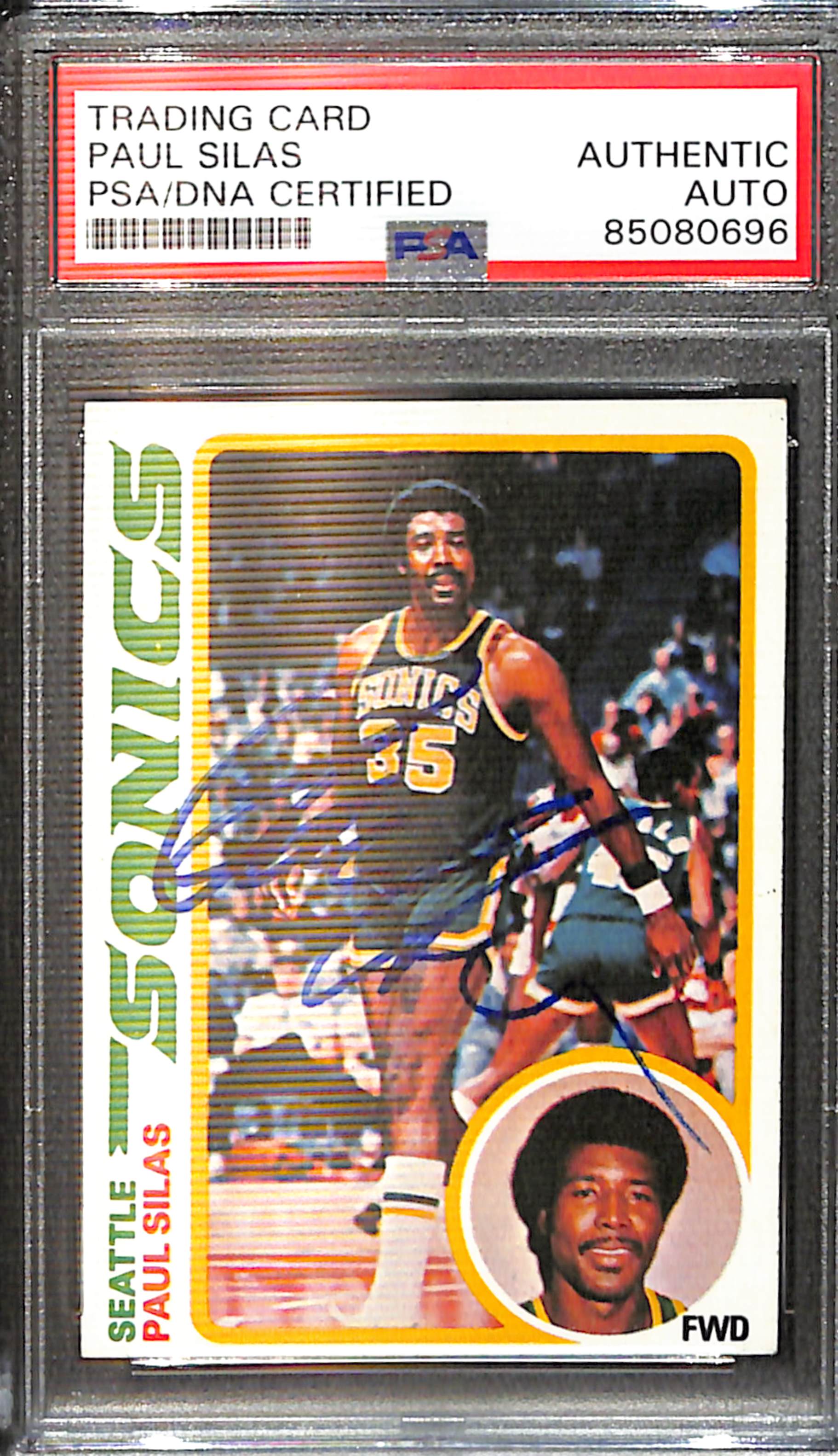 Offered is a Paul Silas Signed/Auto 1978 Topps Card #94 Seattle Sonics. This Card is authenticated by PSA/DNA and is encapsulated in their tamper-proof plastic case.