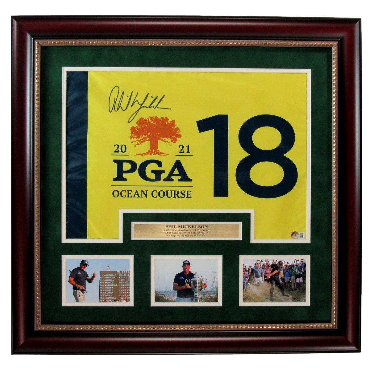 Phil Mickelson Autographed 2021 PGA Championship Pin Flag Framed Beckett 188980