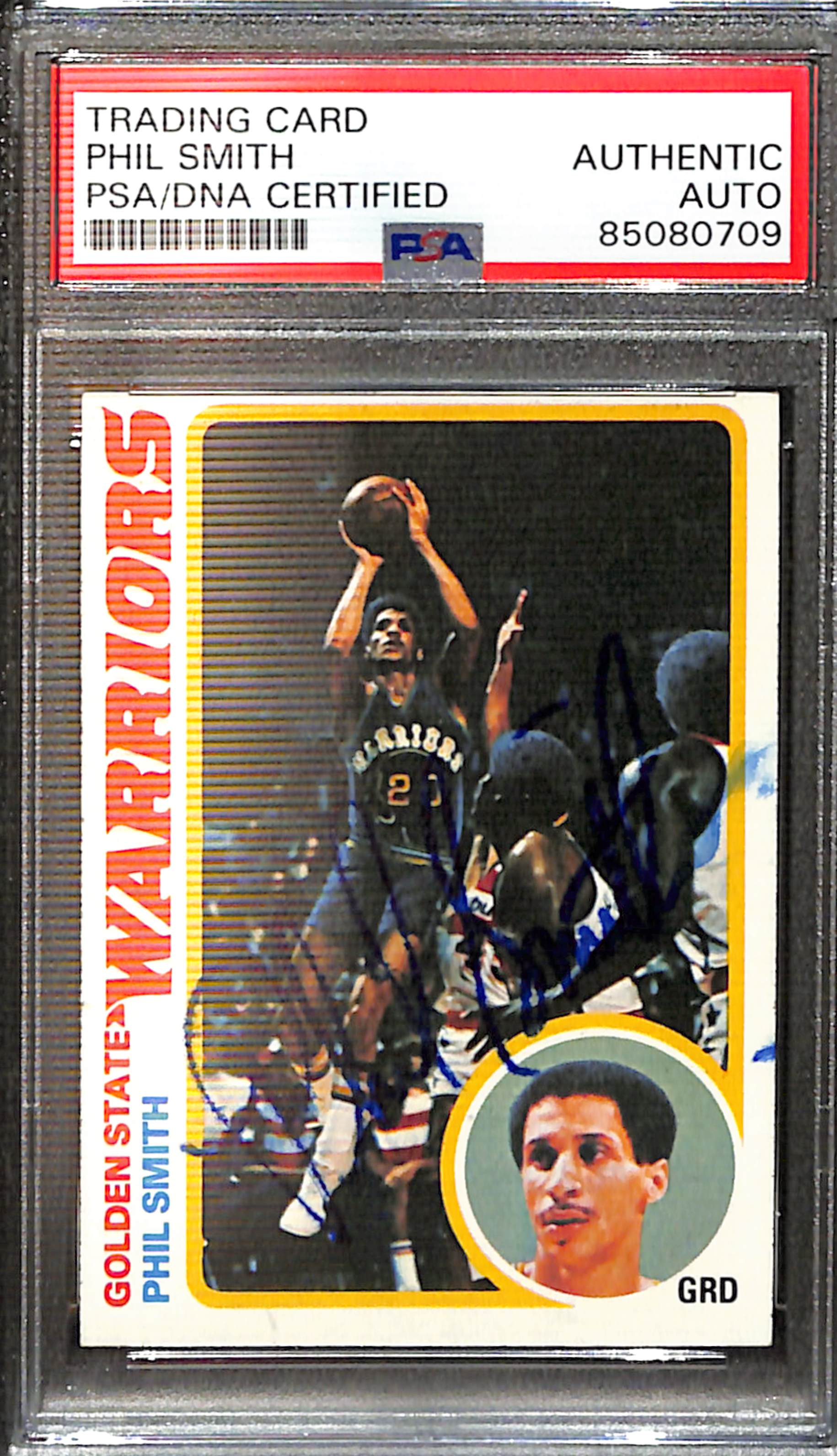 Offered is a Phil Smith Signed/Auto 1978 Topps Card #33 Golden State Warriors 2. This Card is authenticated by PSA/DNA and is encapsulated in their tamper-proof plastic case.