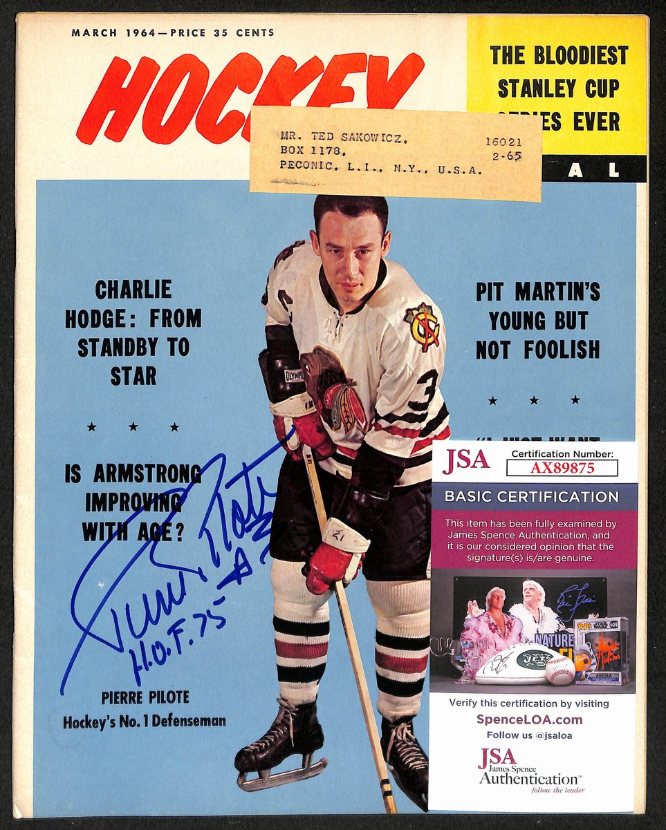 Pierre Pilote HOF Chicago Blackhawks Signed 1964 Hockey Pictorial JSA 197143
