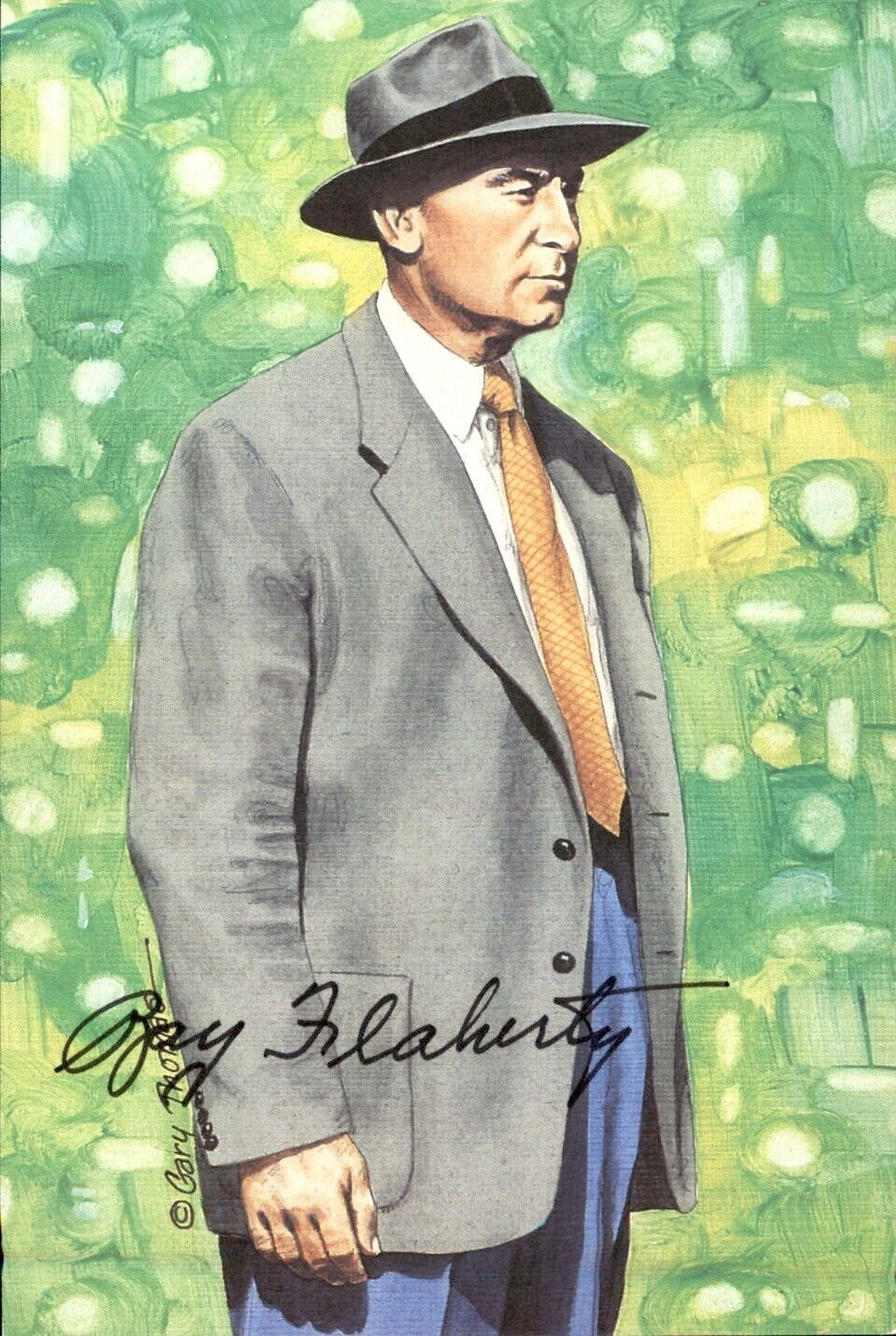 Ray Flaherty HOF Autographed Goal Line Art GLAC Postcard Redskins JSA