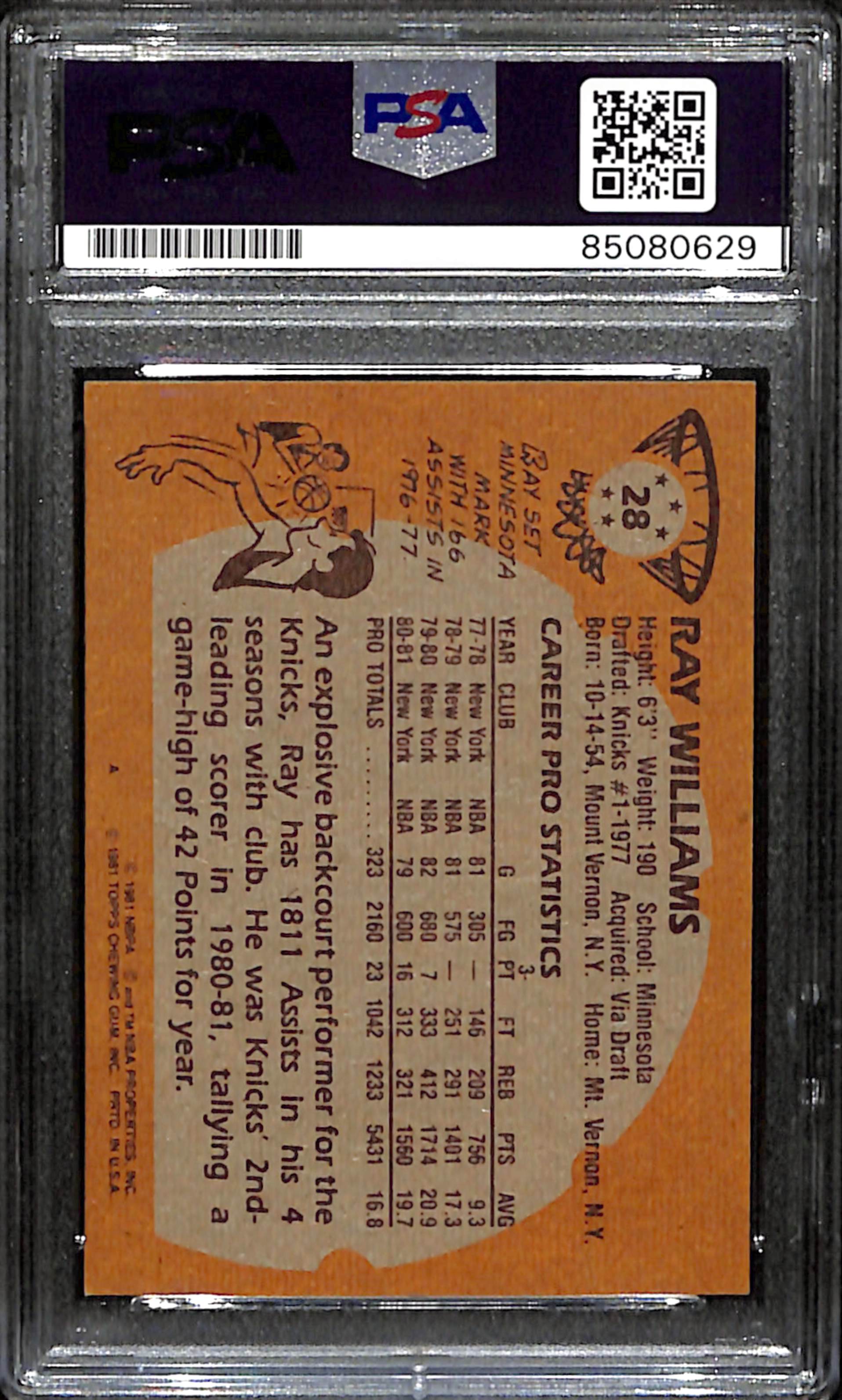 Offered is a Ray Williams Signed 1981 Topps Card #28 New York Knicks. This Card is authenticated by PSA/DNA and is encapsulated in their tamper-proof plastic case.