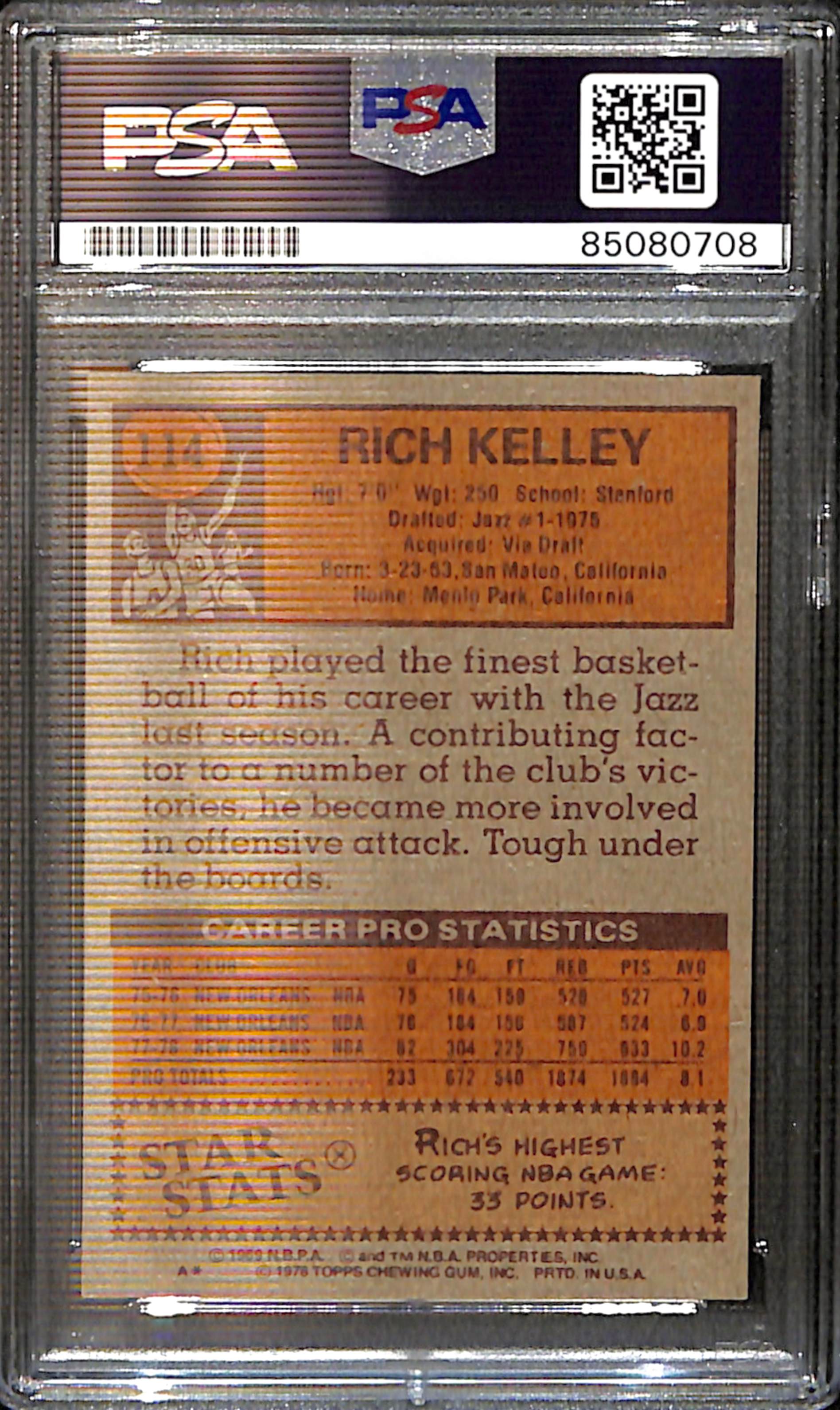 Rich Kelly Signed/Auto 1978 Topps Card #114 Utah Jazz PSA/DNA 185400