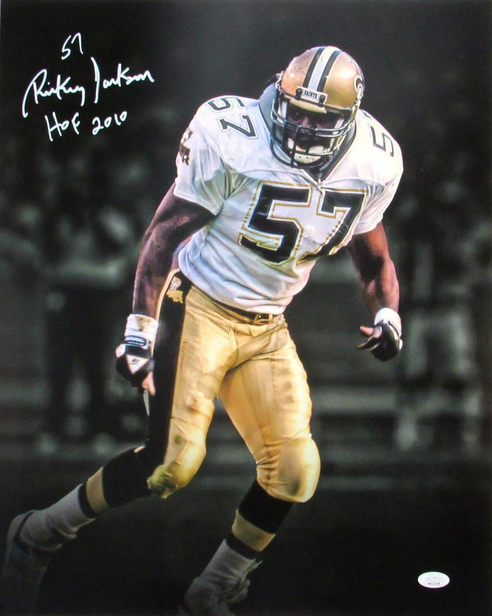 Offered is a Rickey Jackson HOF Autographed/Inscribed "HOF 2010" 16x20 Photo New Orleans Saints. This photo is authenticated by JSA and includes their Tamper-proof Sticker and Certificate of Authenticity.