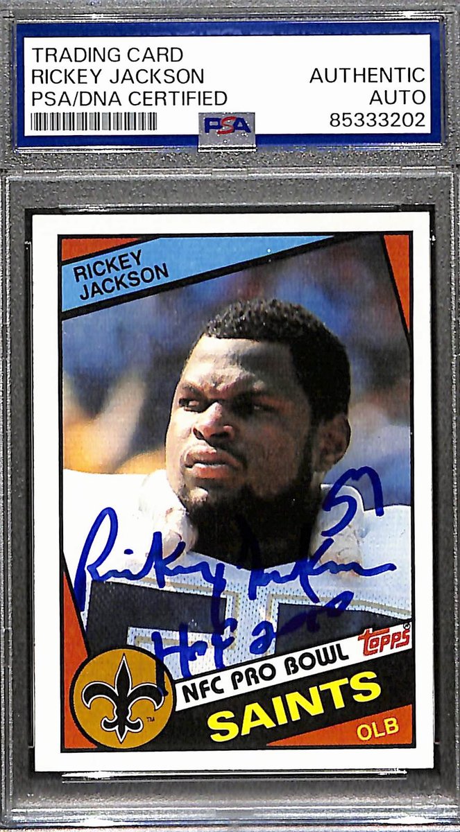 Offered is a Rickey Jackson HOF Signed/Autographed 1984 Topps Card #303 New Orleans Saints Rookie. This card is authenticated by PSA/DNA and is encapsulated in their Tamper-proof Plastic Case.
