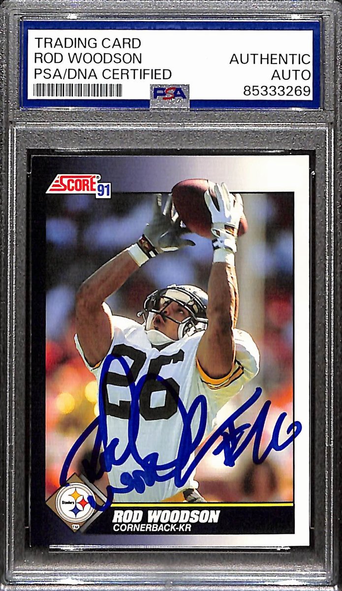 Offered is a Rod Woodson HOF Signed/Autographed 1991 Score #547 Pittsburgh Steelers. This card is authenticated by PSA/DNA and is encapsulated in their Tamper-proof Plastic Case.
