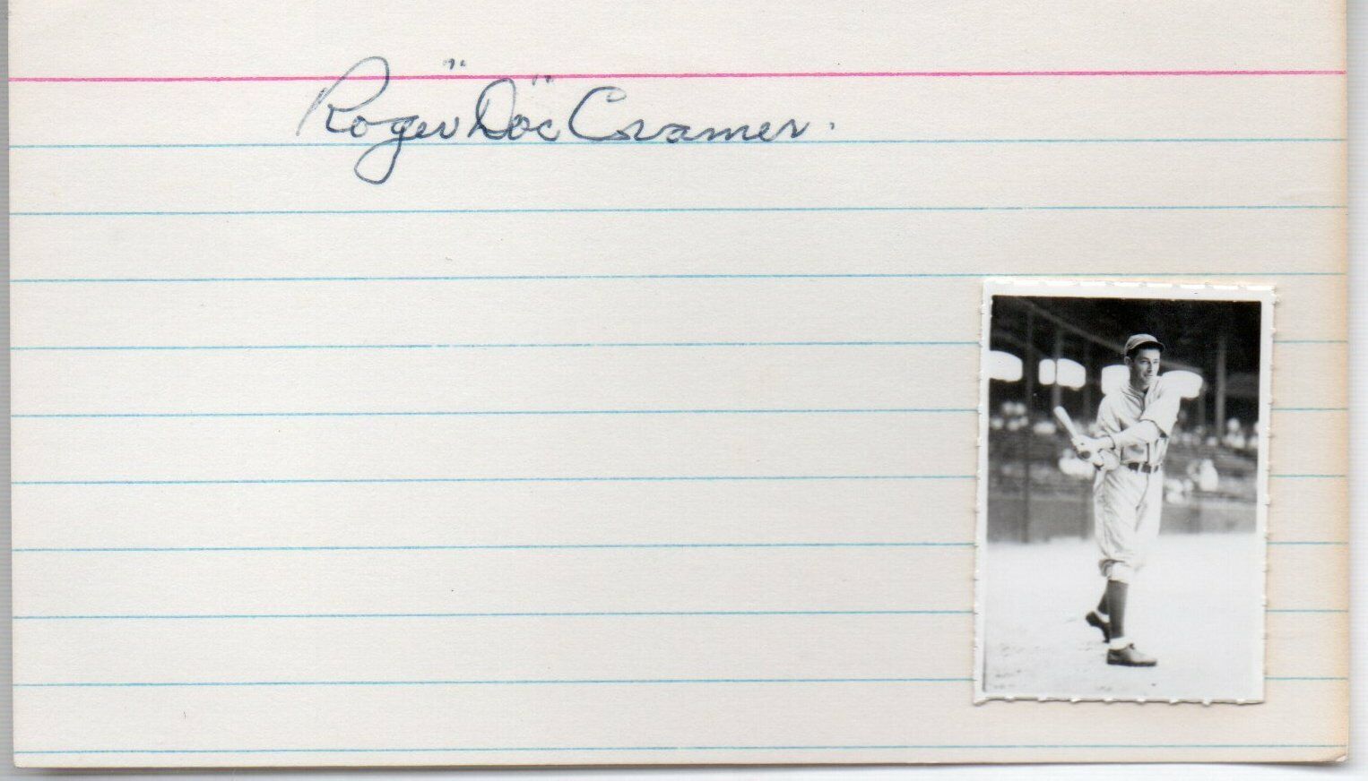 Roger "Doc" Cramer d.1990 Athletics/Red Sox/Tigers Signed 3x5 Index Card 145613