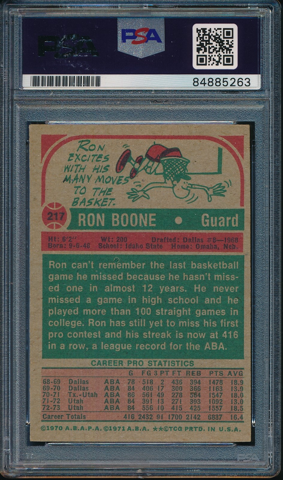 Ron Boone Utah Stars Autographed 1973-74 TOPPS Card #217 PSA/DNA 182134