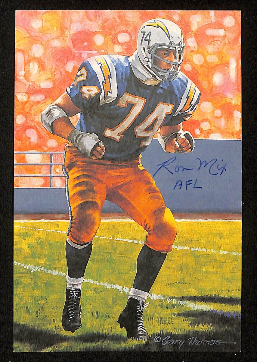 Ron Mix HOF Signed/Inscr 1992 Goal Line Art GLAC Postcard Chargers JSA 196074