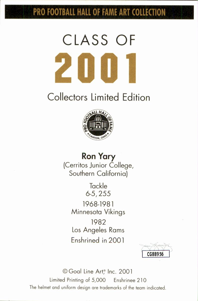 Ron Yary Vikings HOF Autographed Goal Line Art GLAC Postcard JSA