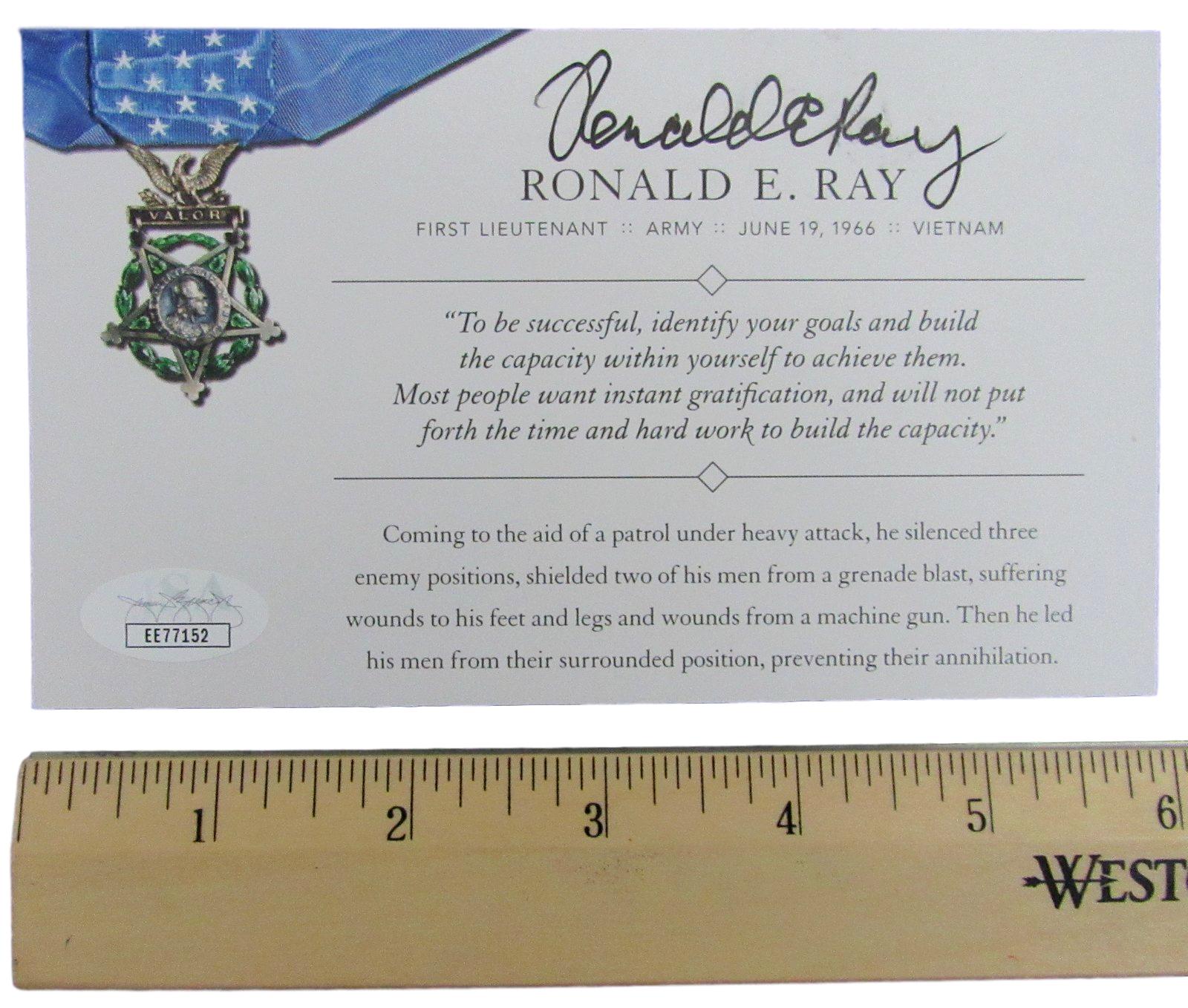 Ronald E. Ray, MOH Recipient, Signed MOH 4x6 Society Card JSA 146369