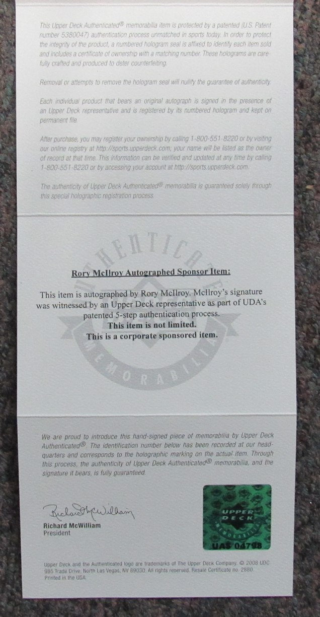 Offered is a Rory McIlory Signed/Auto 2012 PGA Championship Pin Flag with Photo Collage Framed. The outer frame size is 26 inches x 25 inches. This flag is authenticated by Upper Deck and includes their Tamper-proof Sticker and Certificate of Authenticity.