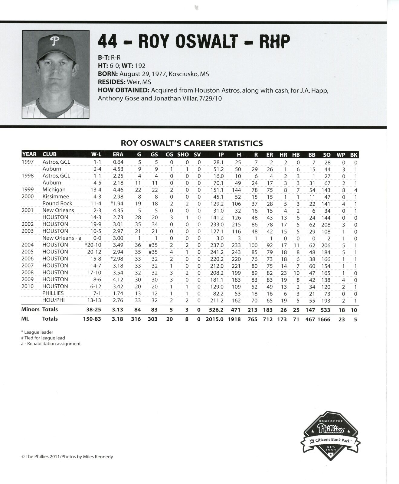 Offered is a Roy Oswalt Autographed 2011 8x10 Phillies Phan Photo.