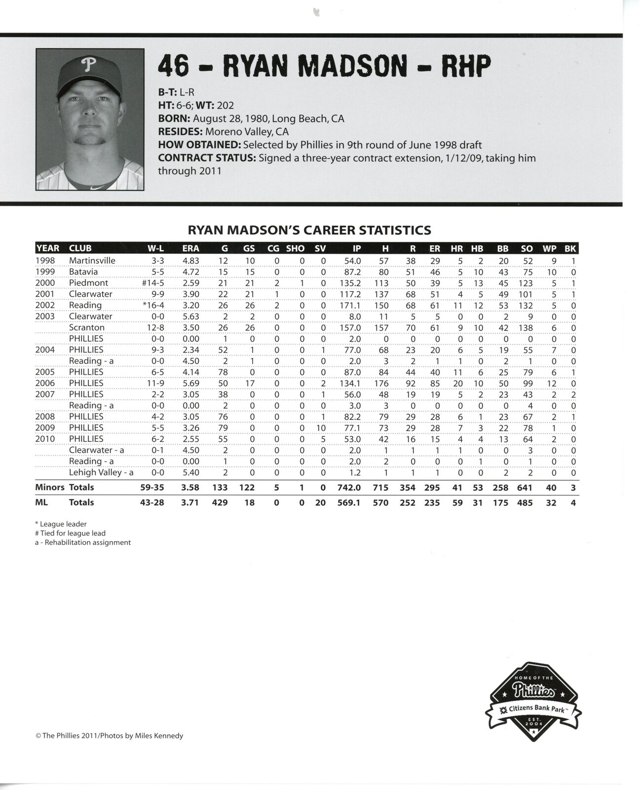 Offered is a Ryan Madson Autographed 2011 8x10 Phillies Phan Photo.