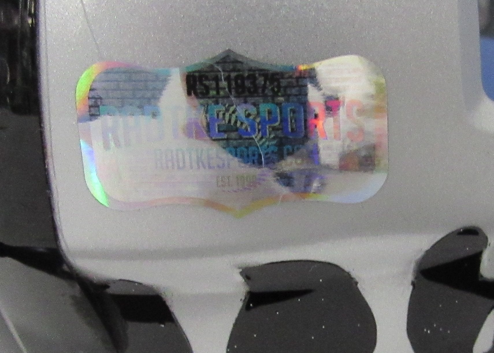 Offered is a Sabastian Janikowski Signed/Autographed Las Vegas Raiders Silver Mini Football Helmet. This helmet is authenticated by Radtke and includes their Tamper-proof Hologram Sticker.