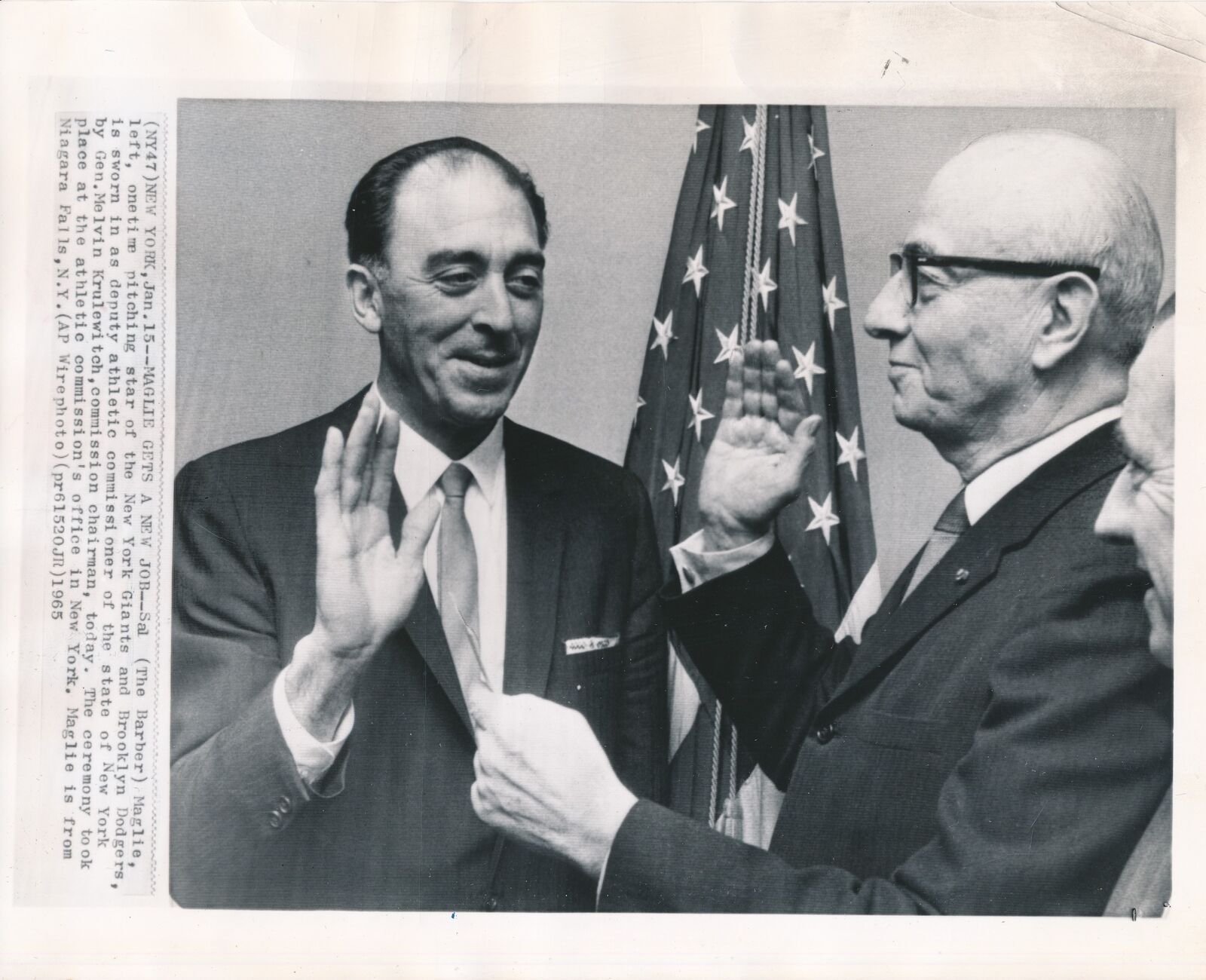 Offered is a Sal Maglie 8x10 B/W 1965 Press Wire Photo New York Giants.