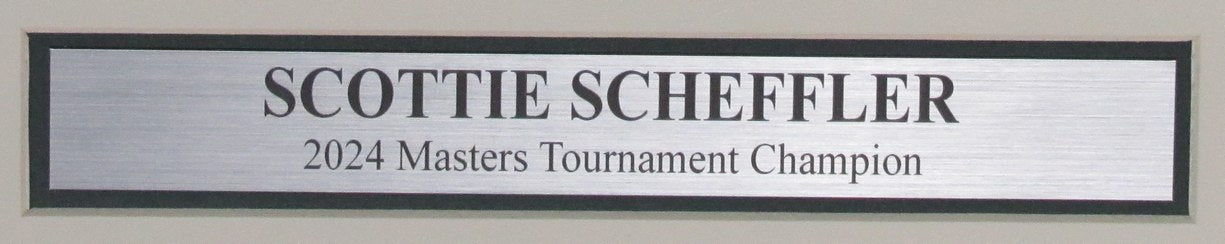 Offered is a Scottie Scheffler 2024 Masters Champ Laser Engraved Signature with Photo Collage and Score Card Framed. The outer frame size is 27 inches x 24 inches.
