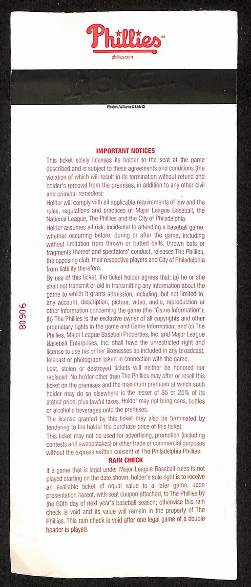 Offered is a Sept 27, 2003 Full Ticket Philadelphia Phillies vs. Atlanta Braves.
