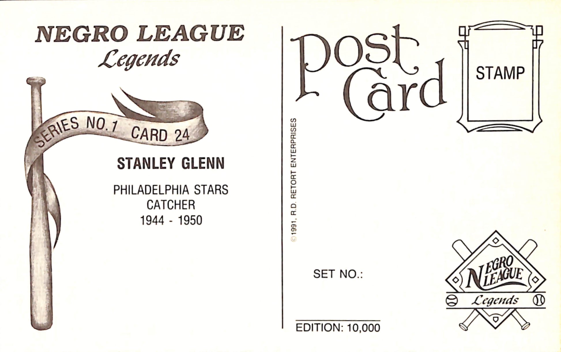 Stanley Glenn Signed 1991 Negro League Legends Post Card Stars 181276