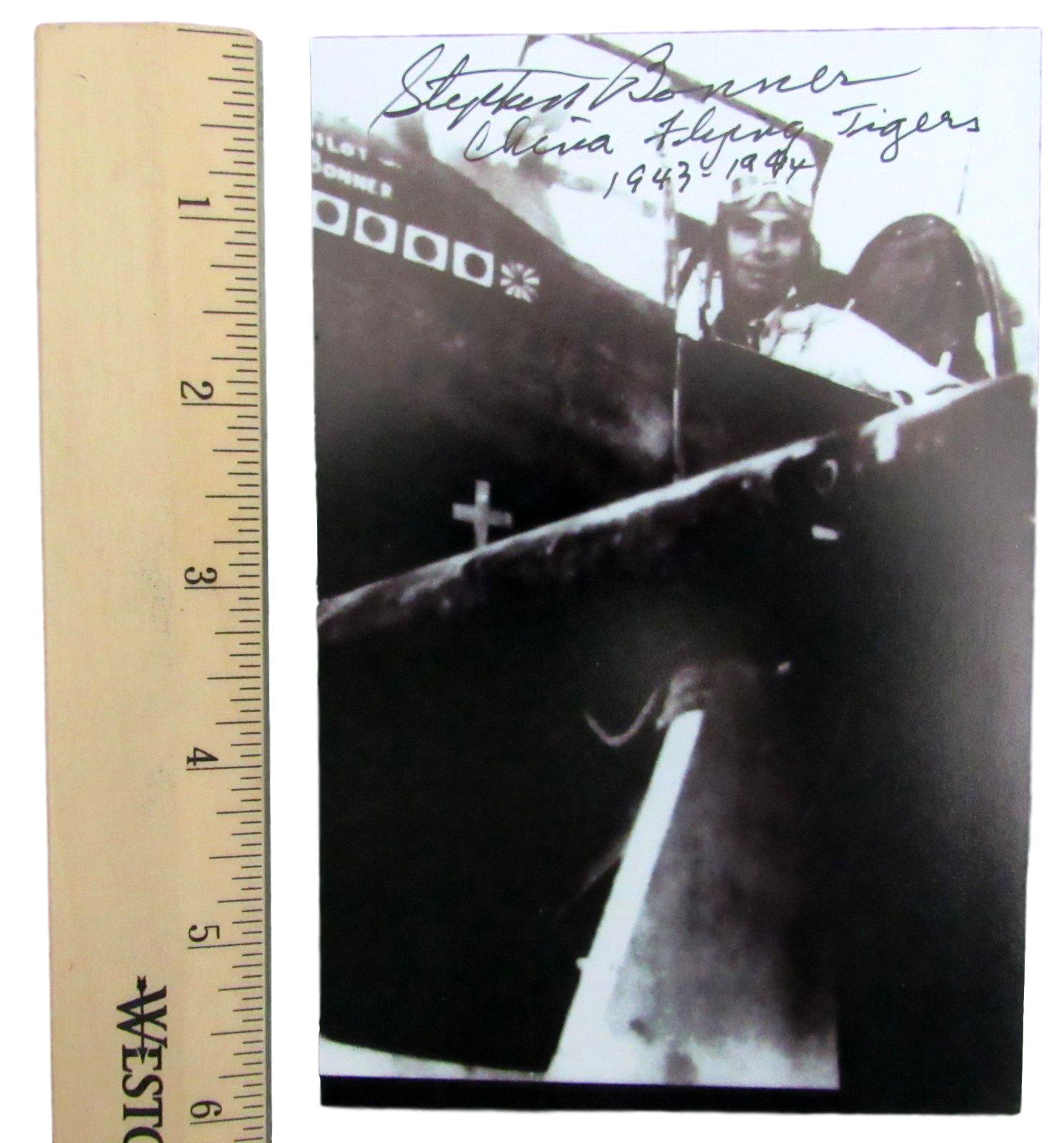 Stephen Bonner WWII Flying Tigers Flying Ace Signed/Inscr 4x6 Photo JSA 146373