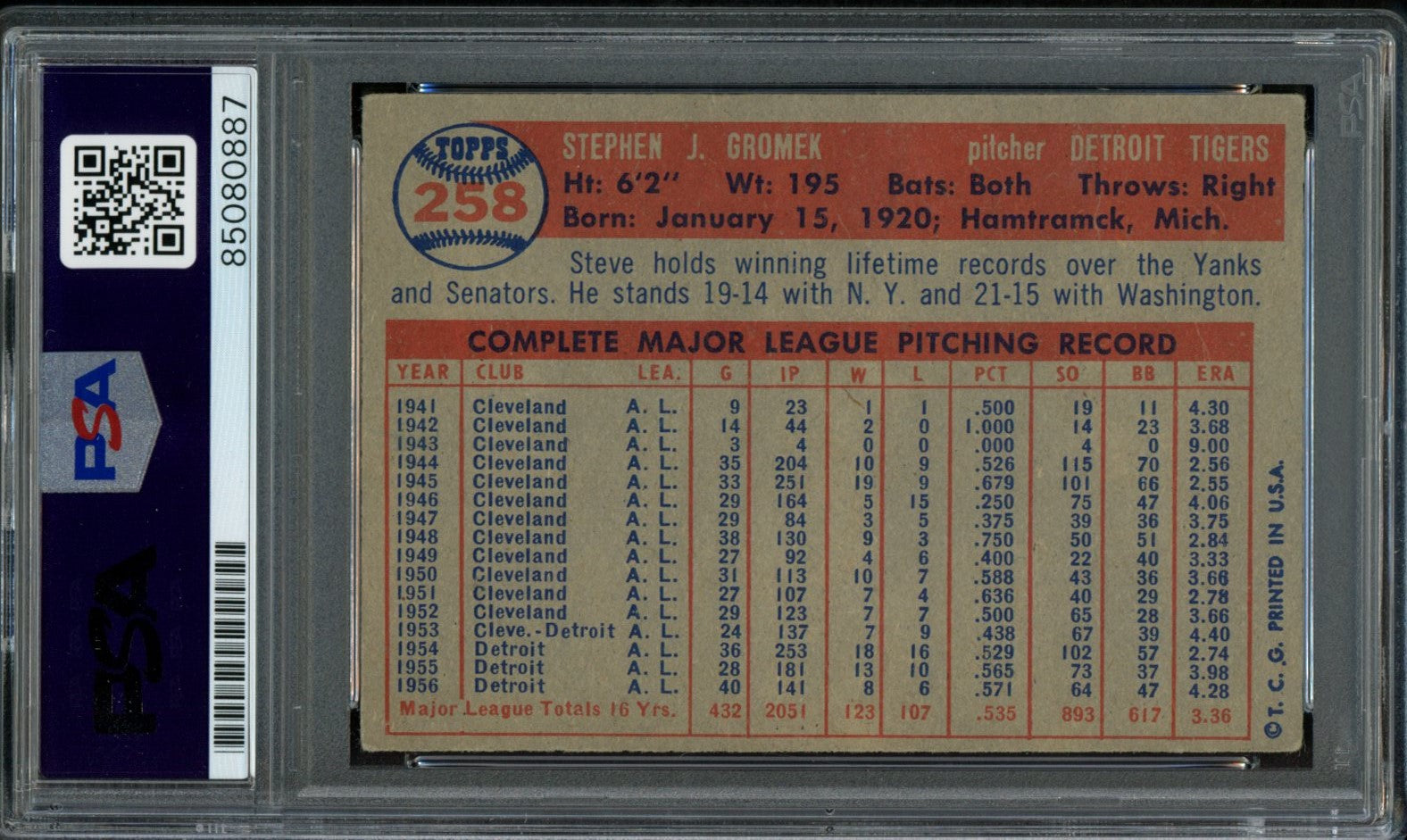 Offered is a Steve Gromek Signed 1957 Topps Trading Card #258 Detroit Tigers. This Card is authenticated by PSA/DNA and is encapsulated in their tamper-proof plastic case.
