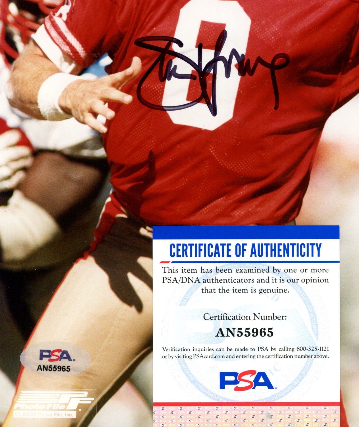 Offered is a Steve Young HOF Signed/Auto 8x10 Photo San Francisco 49ers PSA/DNA 188102. This photo is authenticated by PSA/DNA and is includes their tamper-proof sticker and certificate of authenticity.