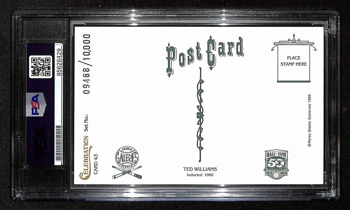 Offered is a Ted Williams HOF Signed Perez Steele Celebration Postcard Boston Red Sox. This card is authenticated by PSA/DNA and is encapsulated in their tamper-proof plastic case.