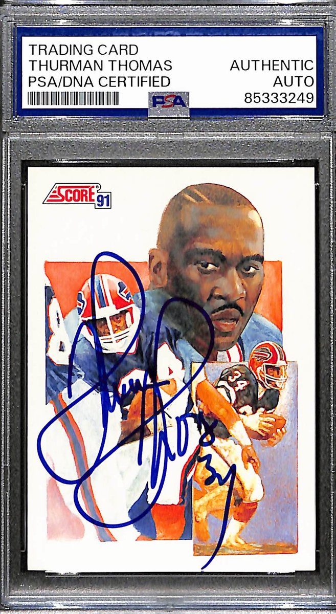 Offered is a Thurman Thomas HOF Signed/Autographed 1991 Score Card #664 Buffalo Bills. This card is authenticated by PSA/DNA and is encapsulated in their Tamper-proof Plastic Case.