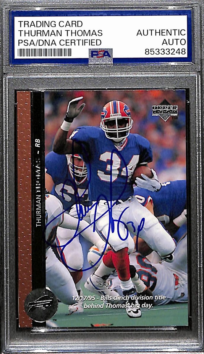 Offered is a Thurman Thomas HOF Signed/Autographed 1996 Upper Deck Card #64 Buffalo Bills. This card is authenticated by PSA/DNA and is encapsulated in their Tamper-proof Plastic Case.