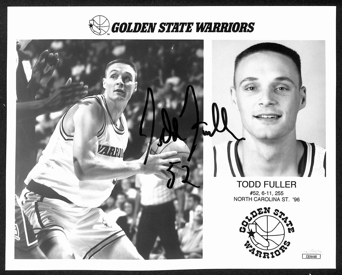 Offered is a Todd Fuller Signed/Autographed 8x10 B/W Photo Golden State Warriors. This photo is authenticated by JSA and includes their tamper-proof hologram sticker and certificate of authenticity.