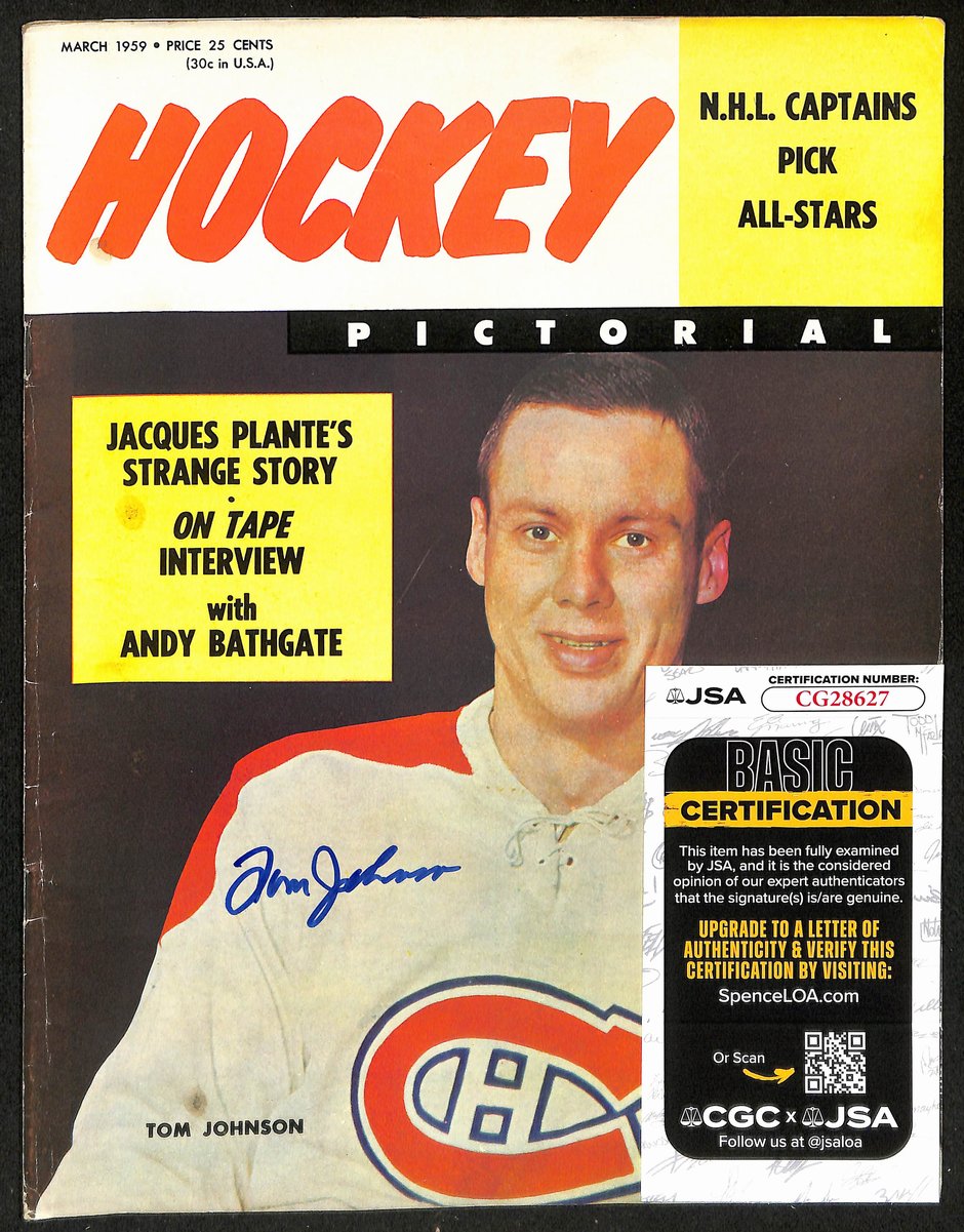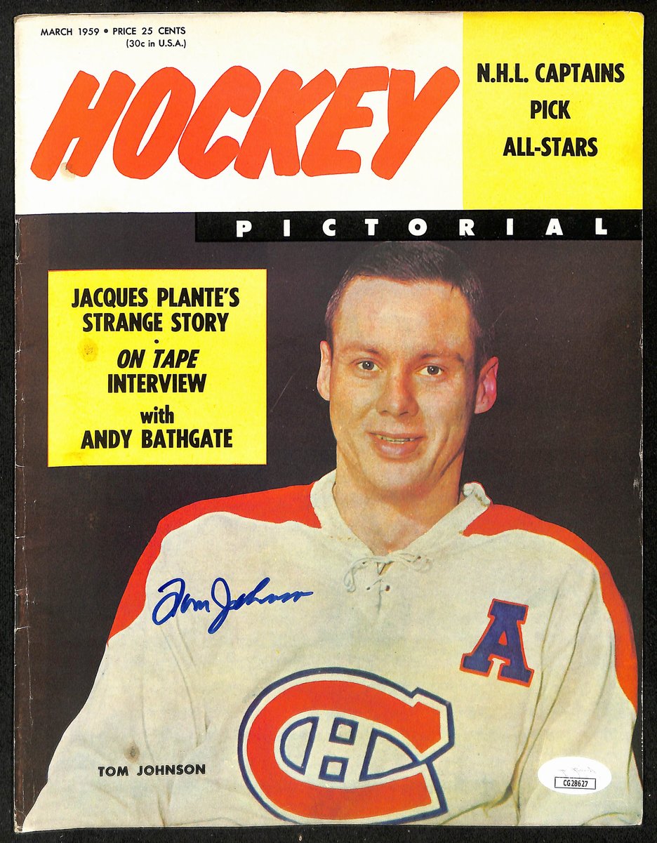 Offered for sale is a Tom Johnson Montreal Canadiens Signed 1959 Hockey Pictorial JSA 197251