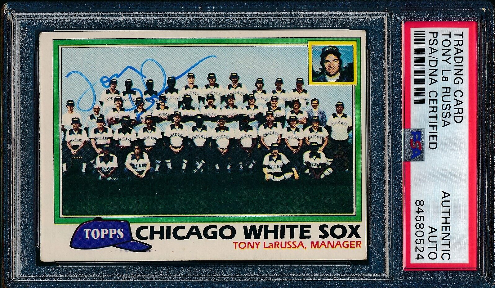Offered is a Tony La Russa HOF Signed/Auto 1981 TOPPS Card #664 Chicago White Sox. This card is authenticated by PSA/DNA and is Encapsulated in their Tamper-proof Case.