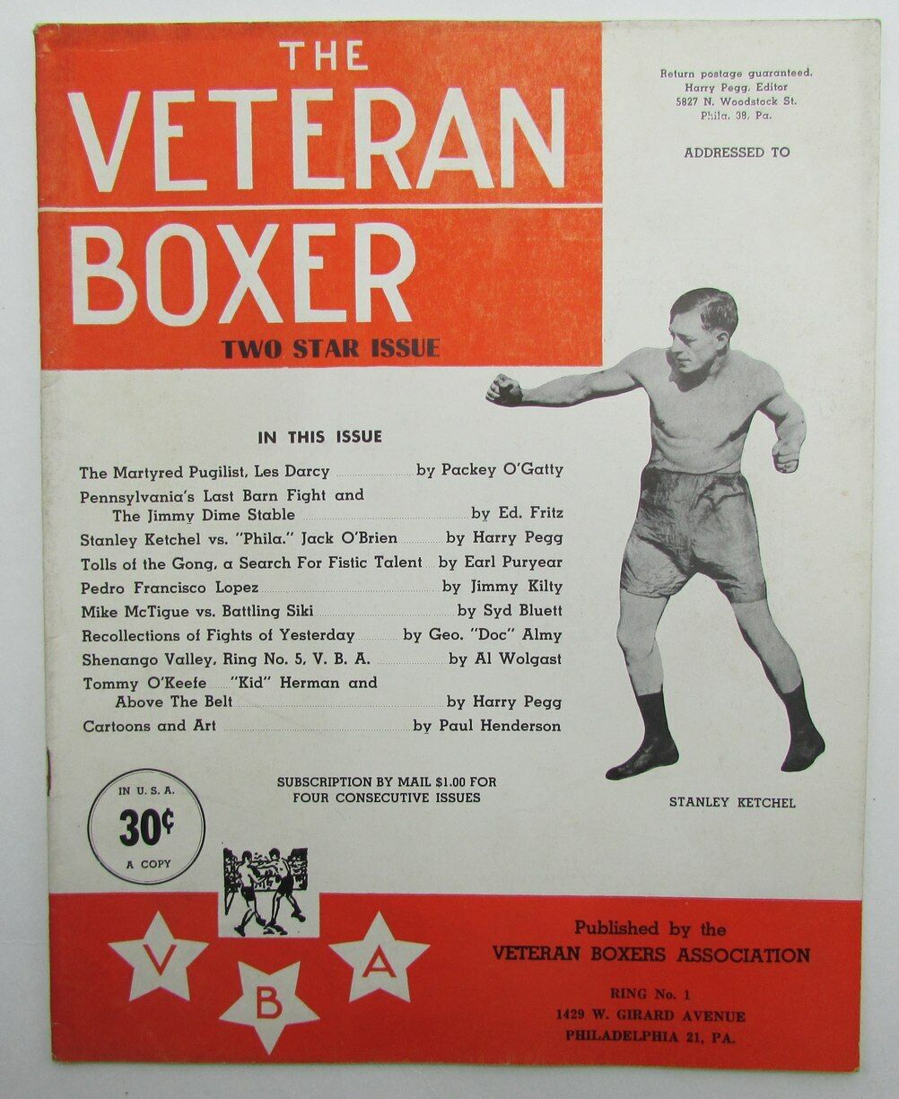 Offered is a Two Star Issue 1949 The Veteran Boxer Magazine Stanley Ketchel on Cover.