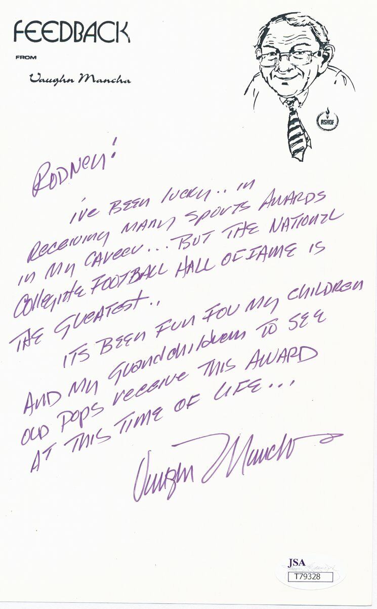 Vaughn Mancha University of Alabama Signed Letter College FB HOFJSA 137172
