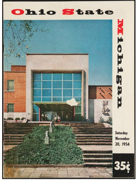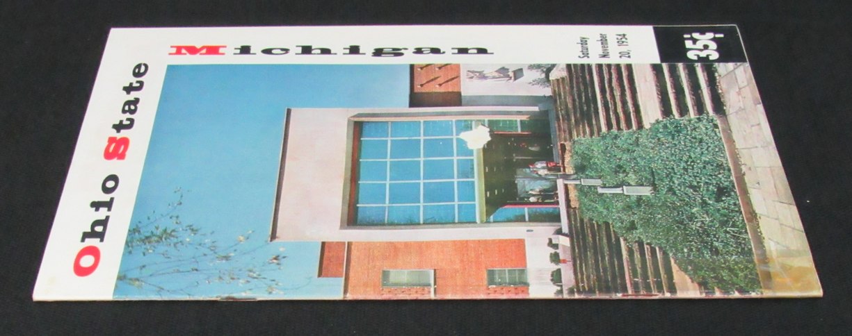 Offered is a program from the 11/20/1954 edition of The Game - Michigan and Ohio State's annual gridiron rivalry. The Buckeyes won 21-7. Unmarked with minor toning.