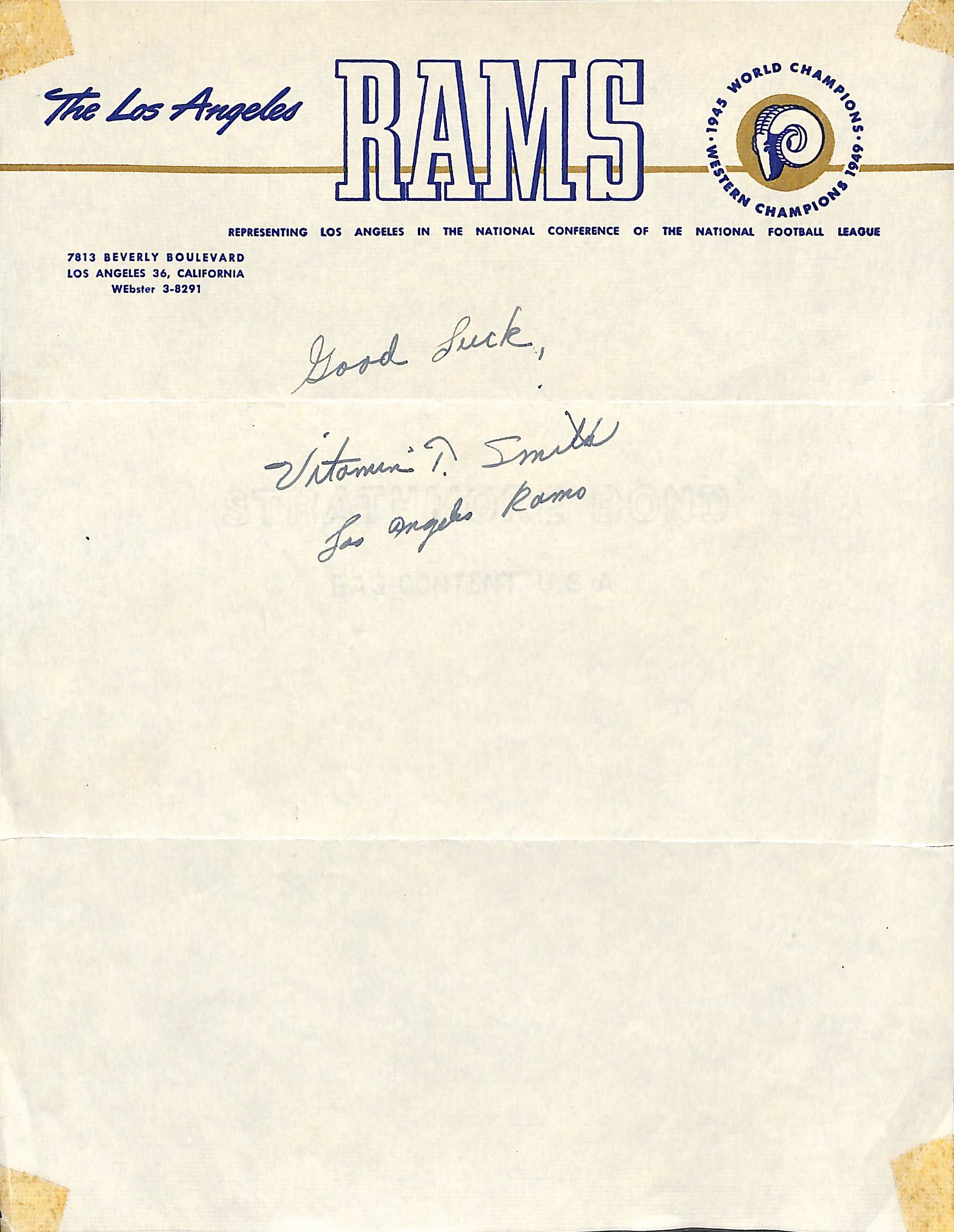 Vitamin T. Smith Autographed Los Angeles Rams Letterhead Stationery 180790