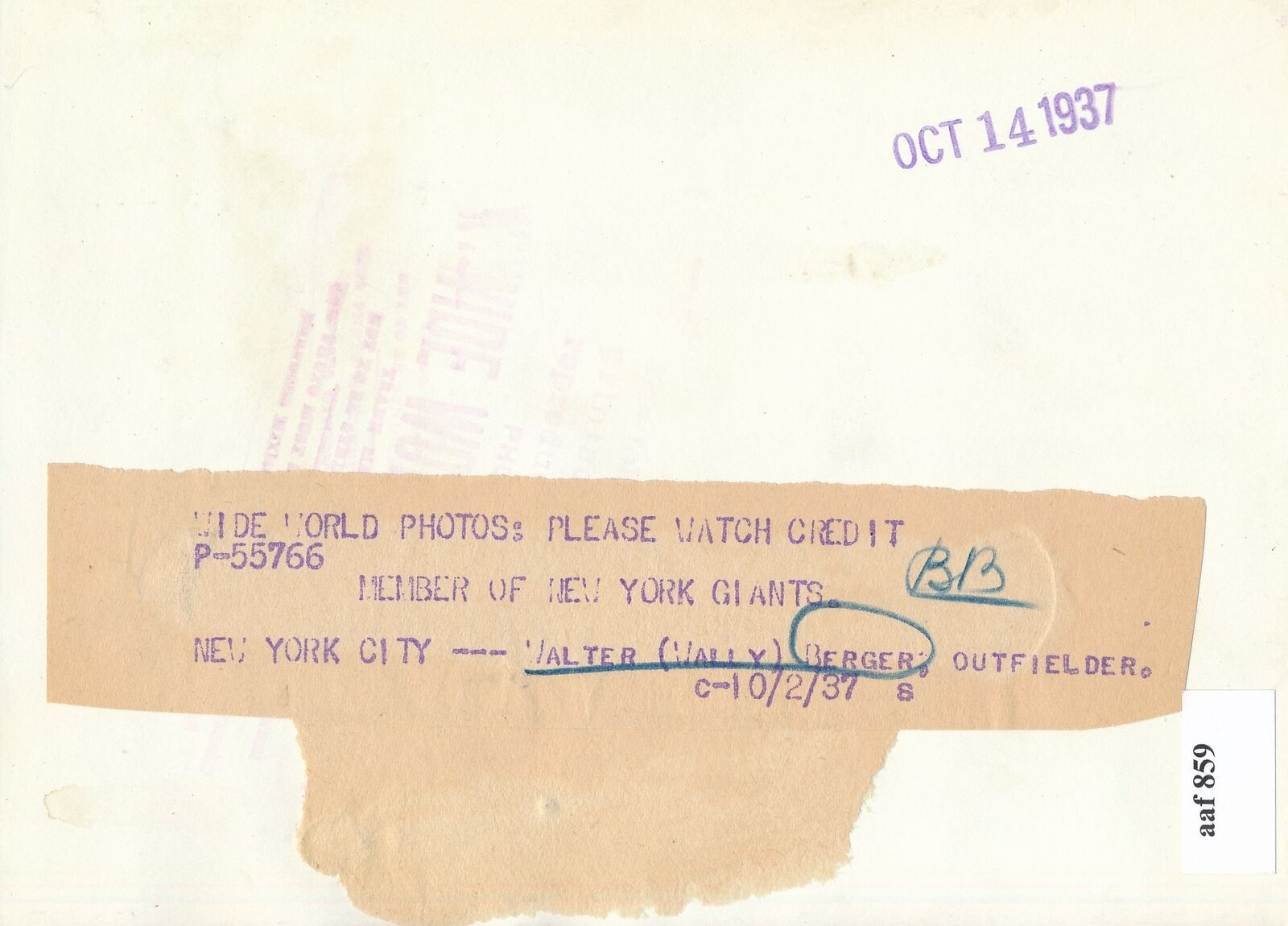 Offered is a Wally Berger 5x7 B/W 1937 Press Wire Photo New York Giants.
