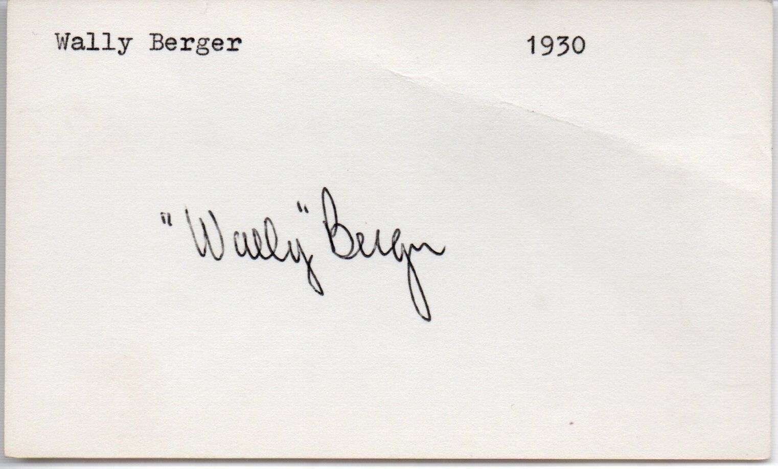 Wally Berger d.1988 Boston Braves AS in 1st AS Game Signed 3x5 Index Card 145607