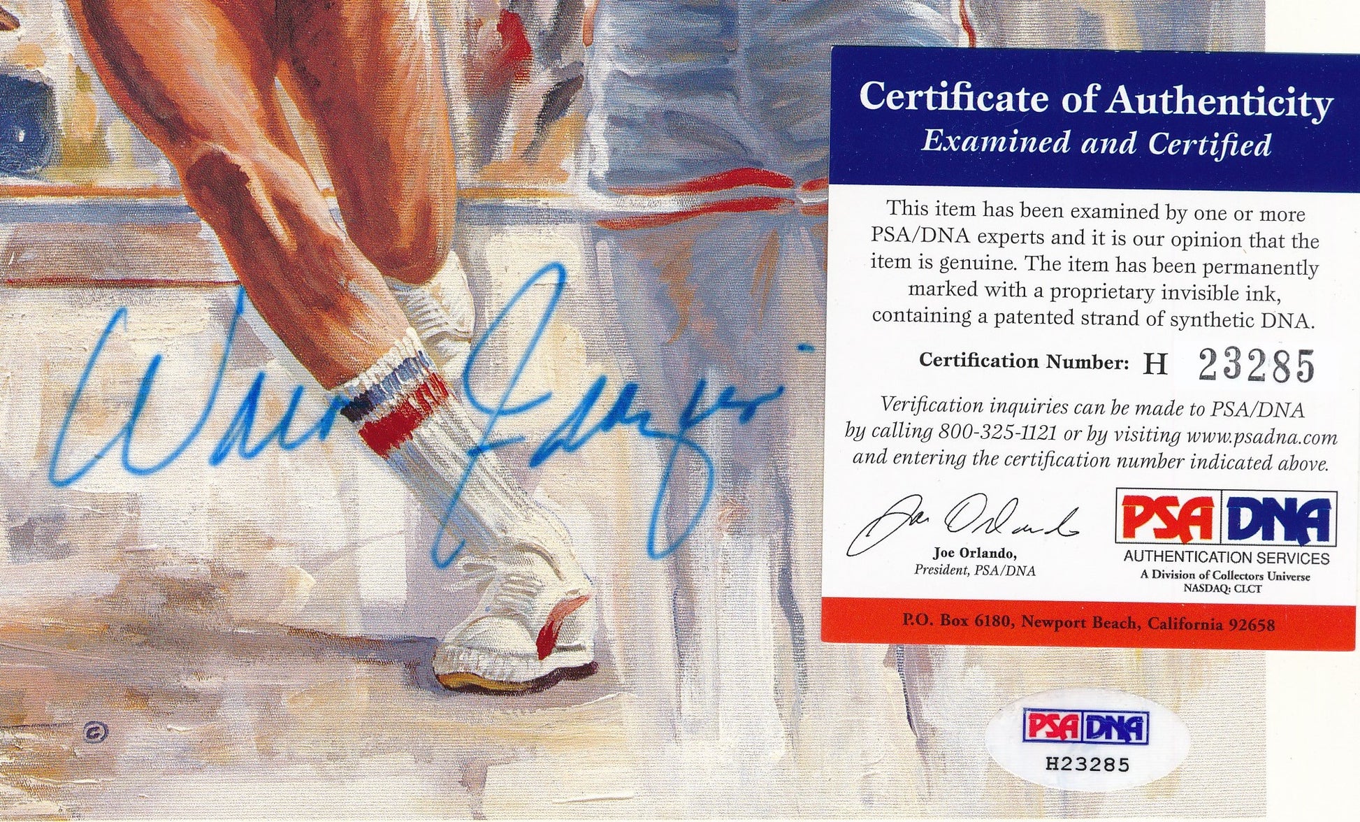 Offered is a Walt Frazier HOF Signed/Autographed 9x11 Lithograph Print New York Knicks. This print is authenticated by PSA/DNA and includes their Tamper-proof Hologram Sticker and Certificate of Authenticity
