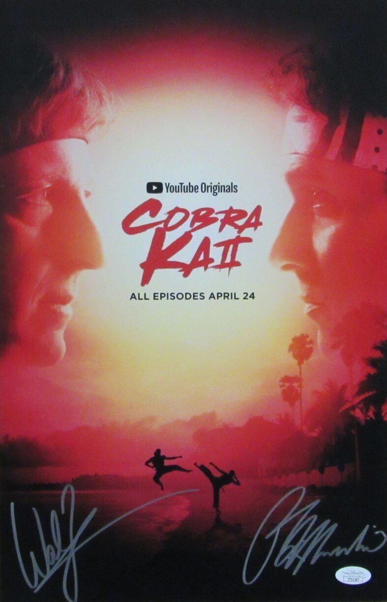 Offered is a William Zabka/Ralph Macchio "Cobra Kai" Dual-Signed/Autographed 11x17 Photo. This Photo is authenticated by JSA and includes their Tamper-proof Sticker and Certificate of Authenticity.