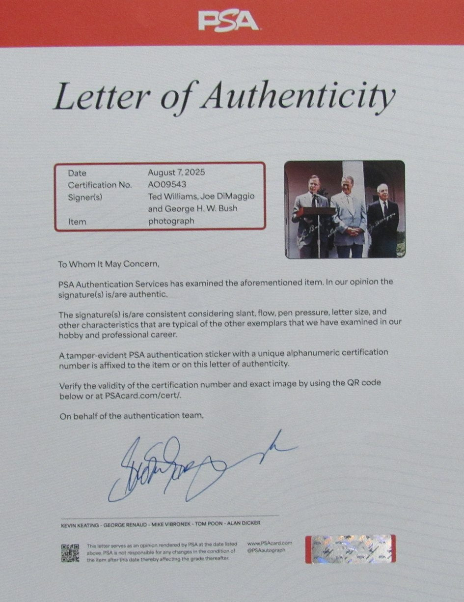 Williams/DiMaggio/Bush Multi-Signed/Autographed 16x20 Photo PSA/DNA 199545