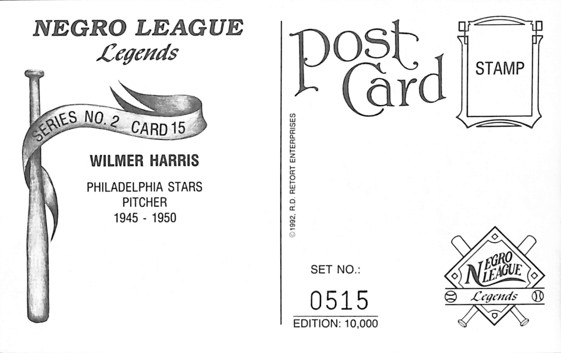 Wilmer Harris Signed 1991 Negro League Legends Post Card Stars 181279