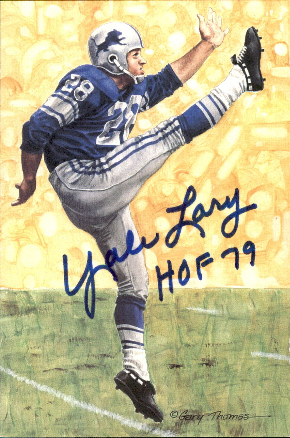 Yale Lary HOF Autographed/Inscribed Goal Line Art GLAC Postcard Lions JSA